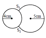 Two soap bubbles of radii r1 and r2 equal to 4 cm and 5 cm are touching each other over a common surface S1S2 (shown in figure). Radius of common surface will be