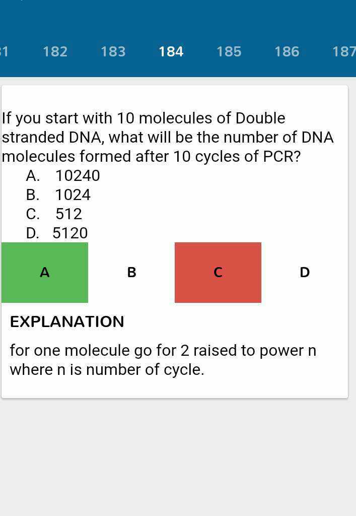 2^10 is 1024. 1024 is for 1 DNA molecule. Since there are 10 molecules, 1024*10= 10240