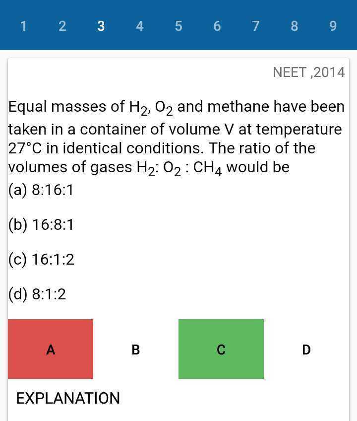 As molar weight of h2=2 oxy=32 and ch4=16;