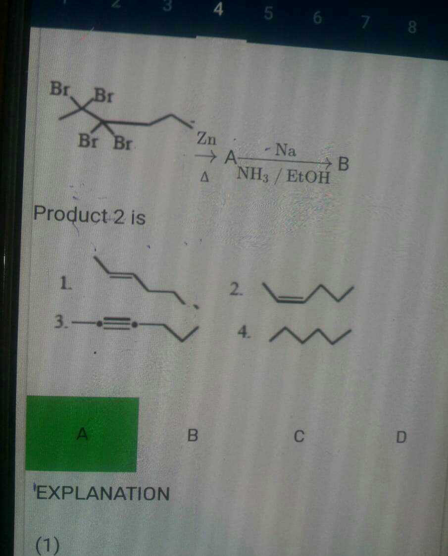 step 1 is elimination and gives alkyne , next step Na/Nh3 adds H2 atoms giving alkene