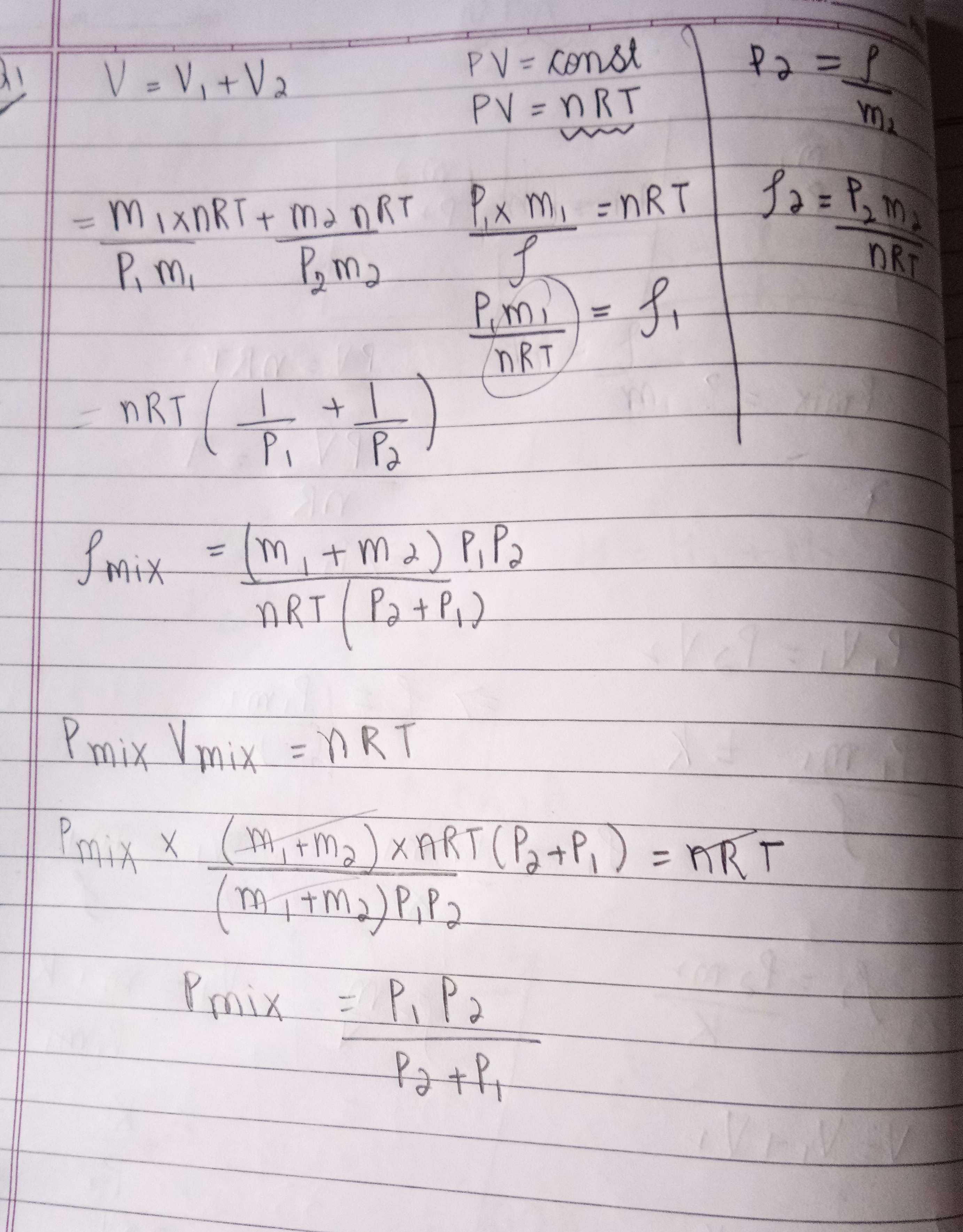 answer is= P1P2(m1+m2) / (P2m1+P1m2)