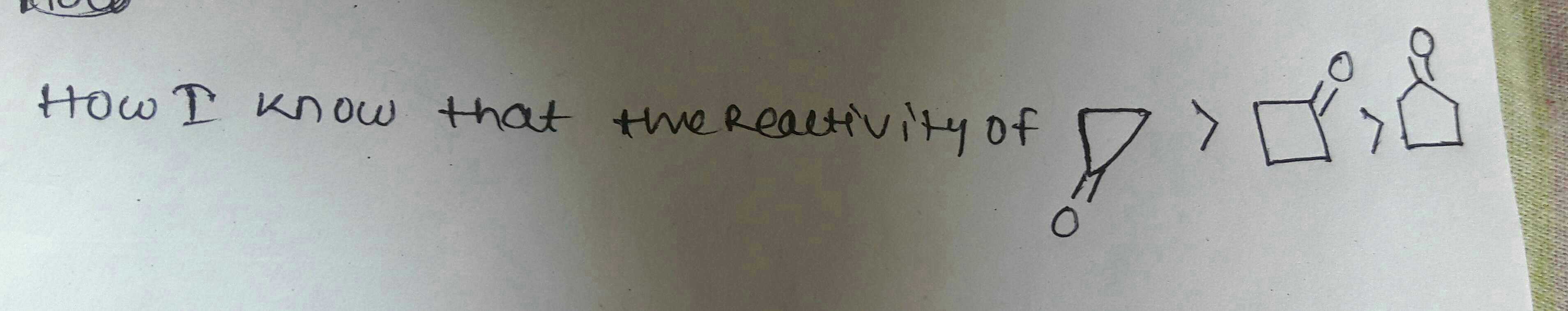 reactivity invrsly prpsnl to stability of cyclo compound
